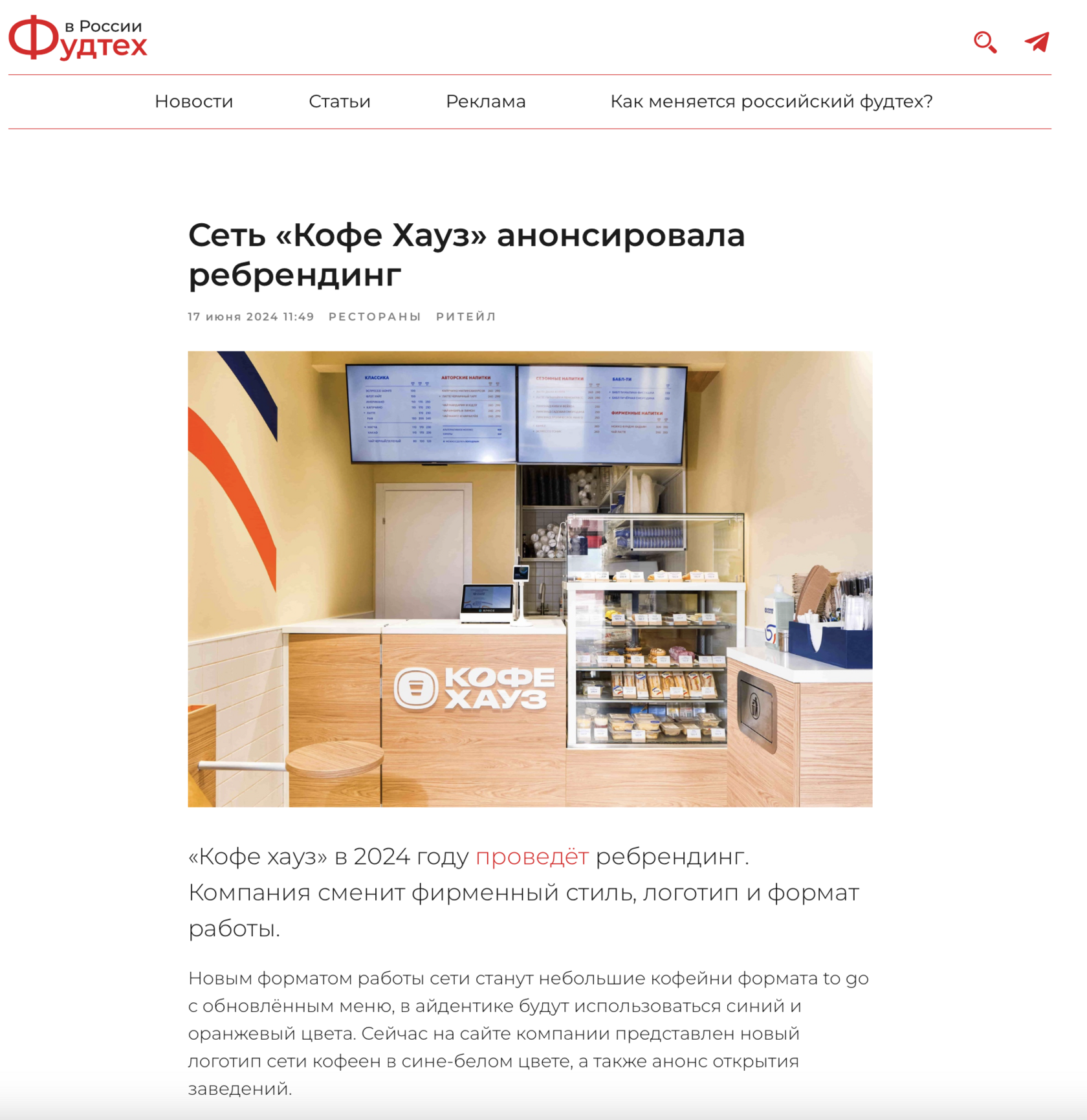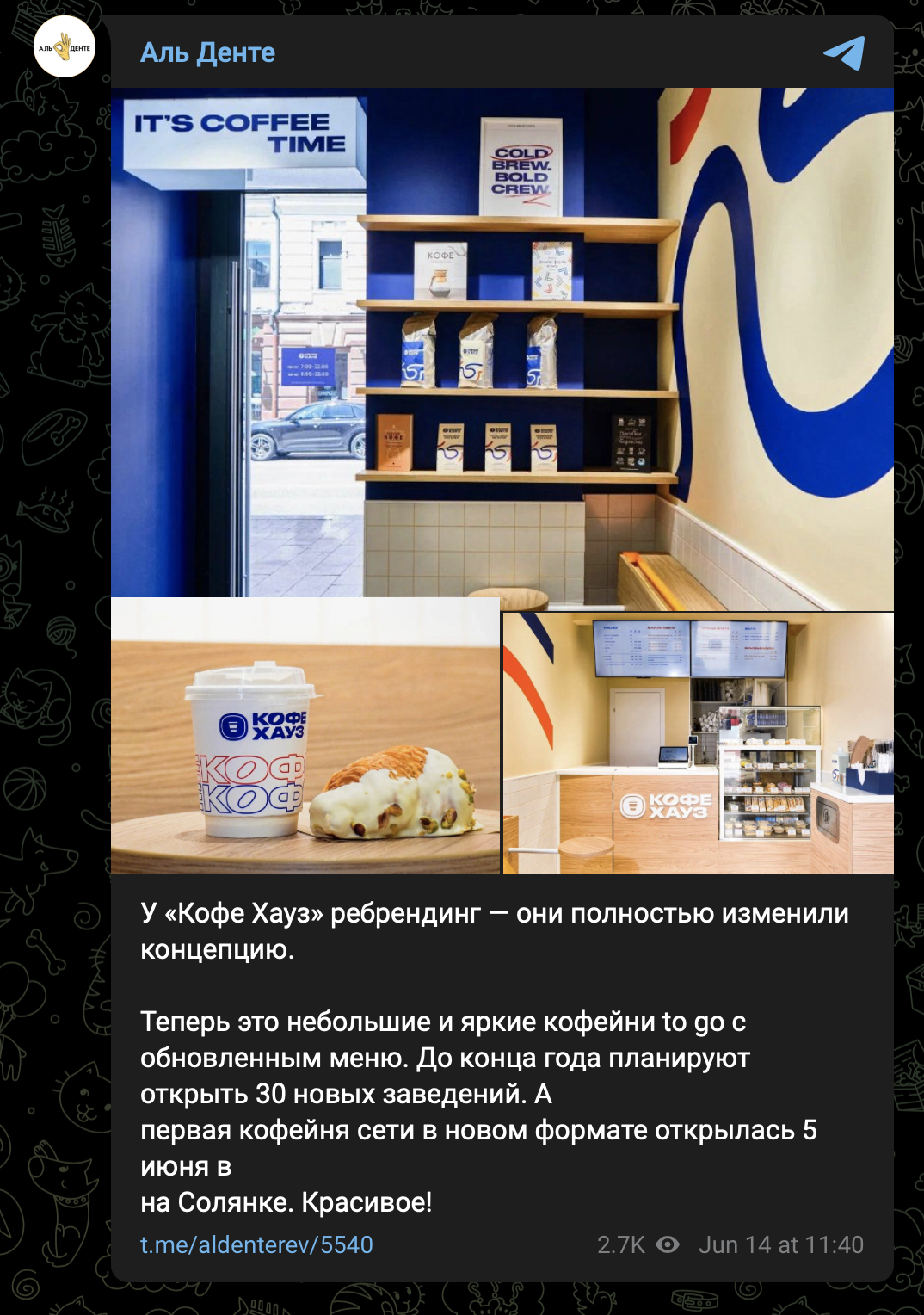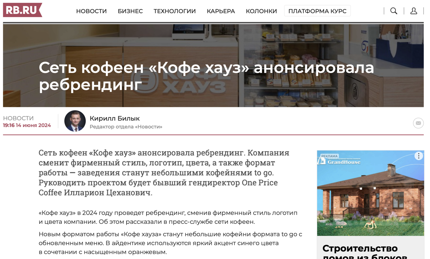 Клиент: Российская сеть кофеен «Кофе Хауз» создана в 1999 году и с 2014 года входит в ГК «Шоколадница». В июне 2024 года запустила масштабный ребрендинг. Полностью изменился формат - теперь это небольшие, яркие кофейни to go с обновленным меню, в которых звучат авторские плейлисты. До конца года планируется открыть 30 новых заведений.