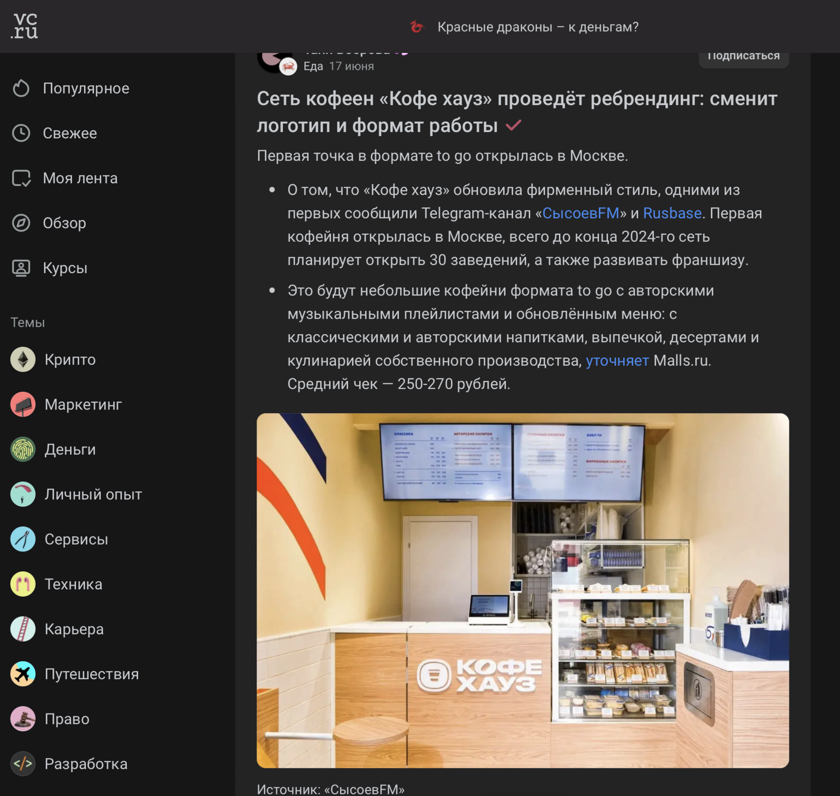 https://coffeehouse.ruСоциальные сети: https://vk.com/coffeehousegohttps://www.instagram.com/coffeehouse Период сотрудничества: