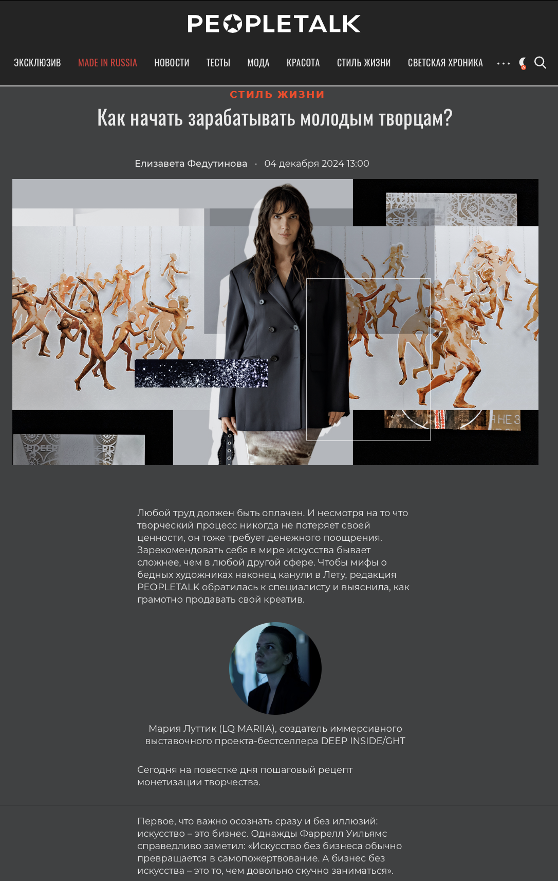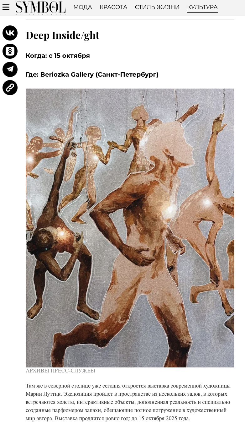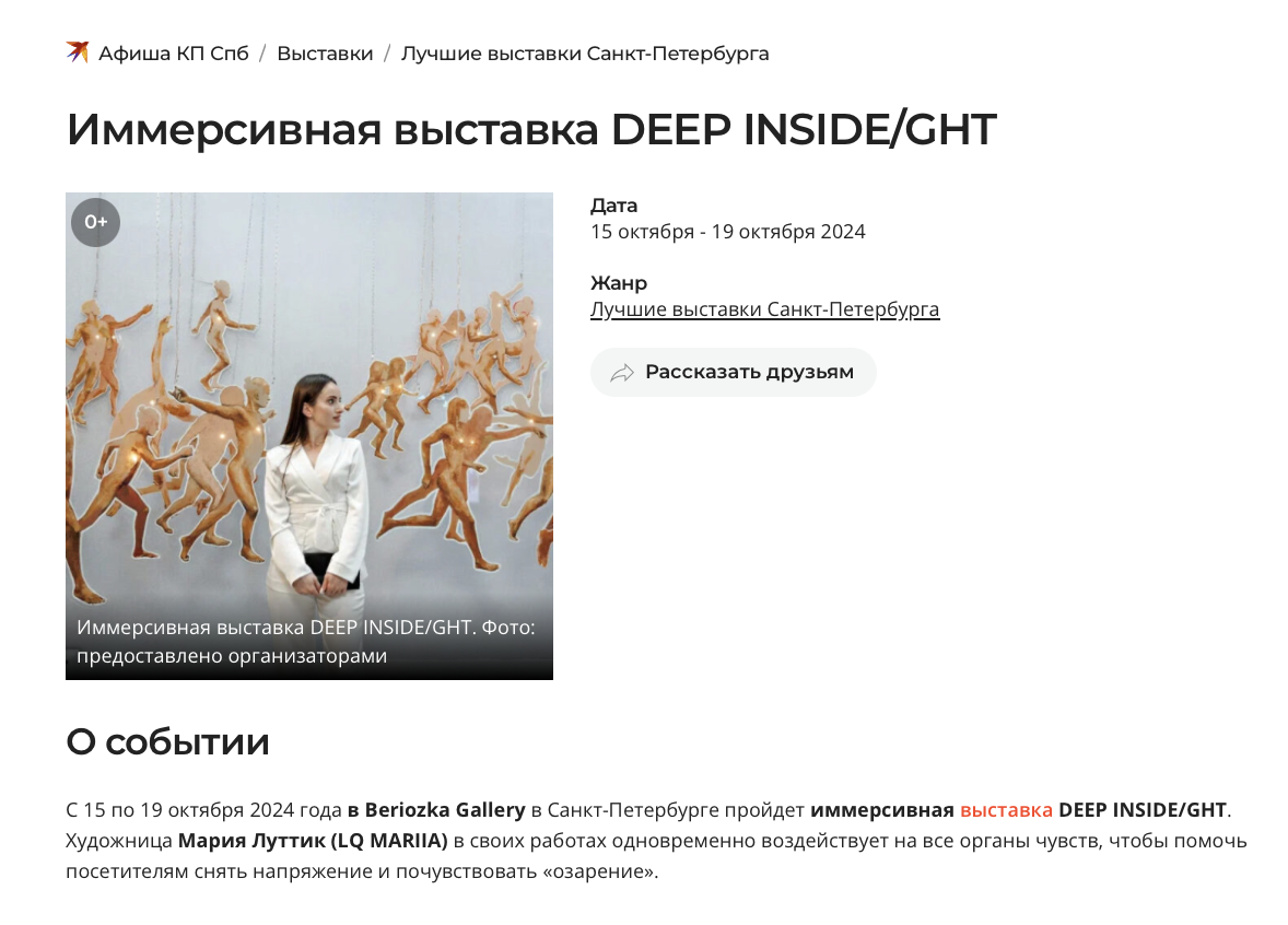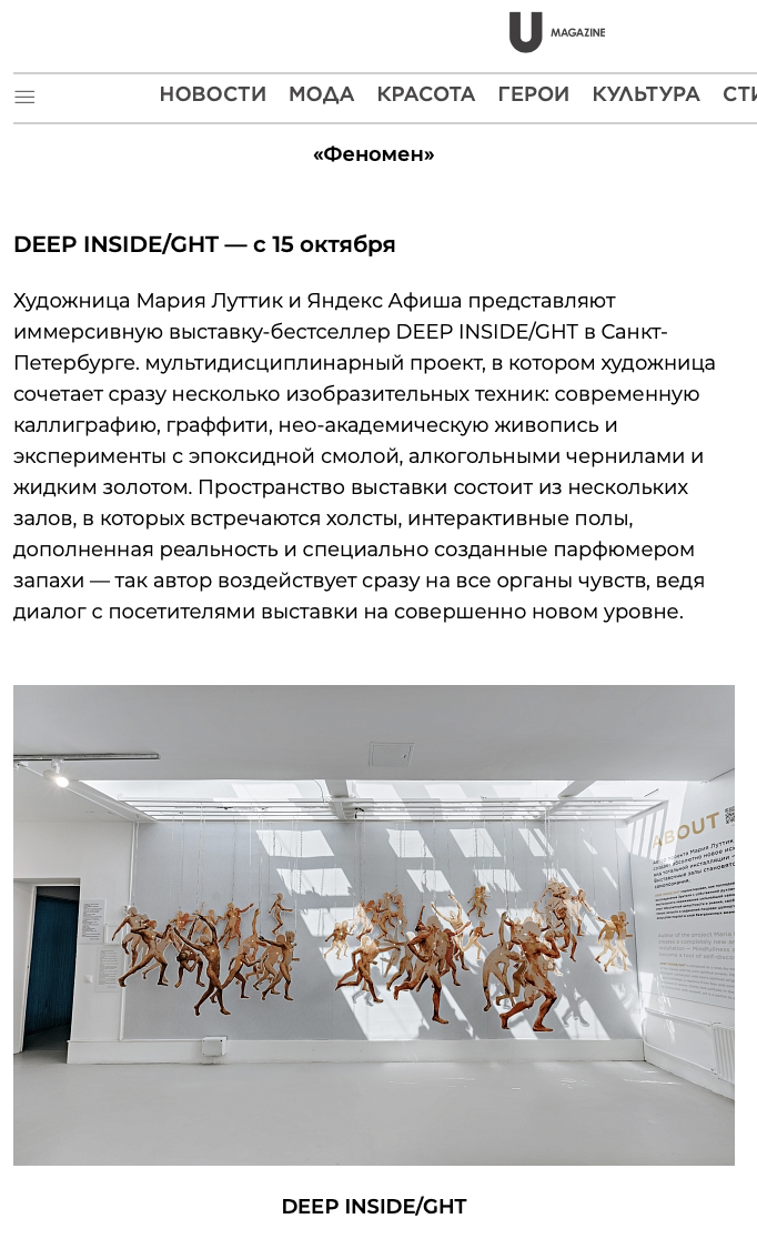 Мария Луттик, создатель и владелец проекта DEEP INSIDE/GHT.ЗадачиПостроение образа бренда и его продвижение на российском и международном рынках, организация мероприятий и коллабораций, увеличение упоминаний в СМИ и соцсетях.