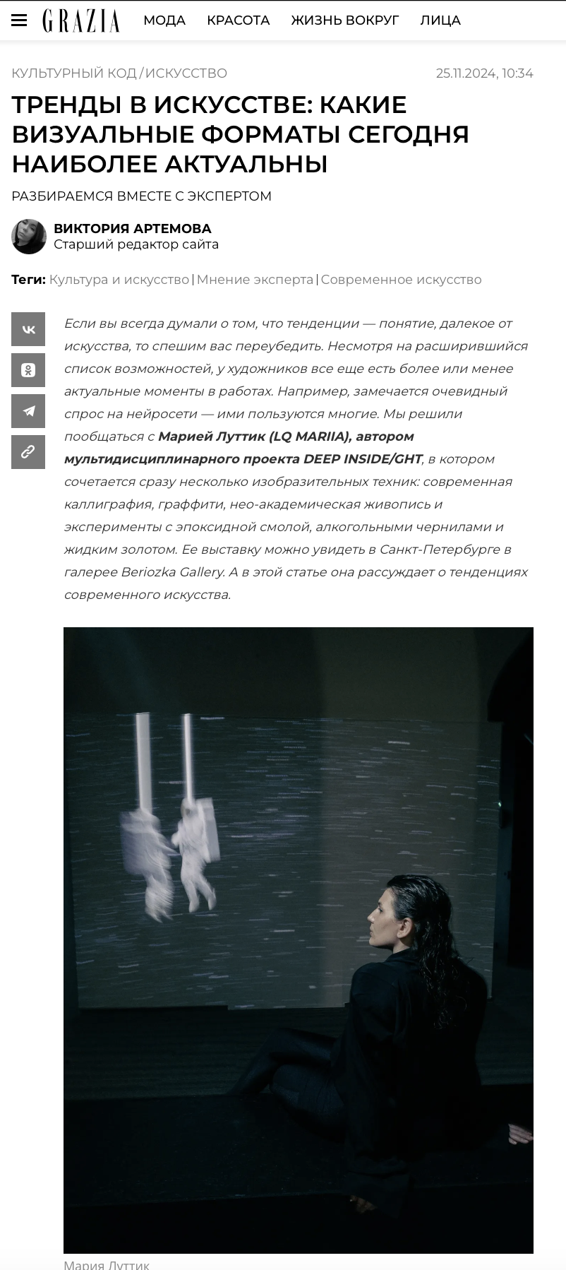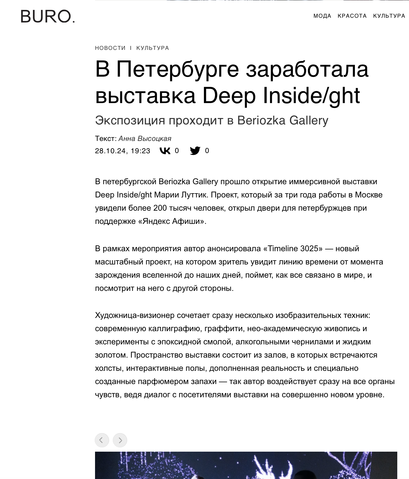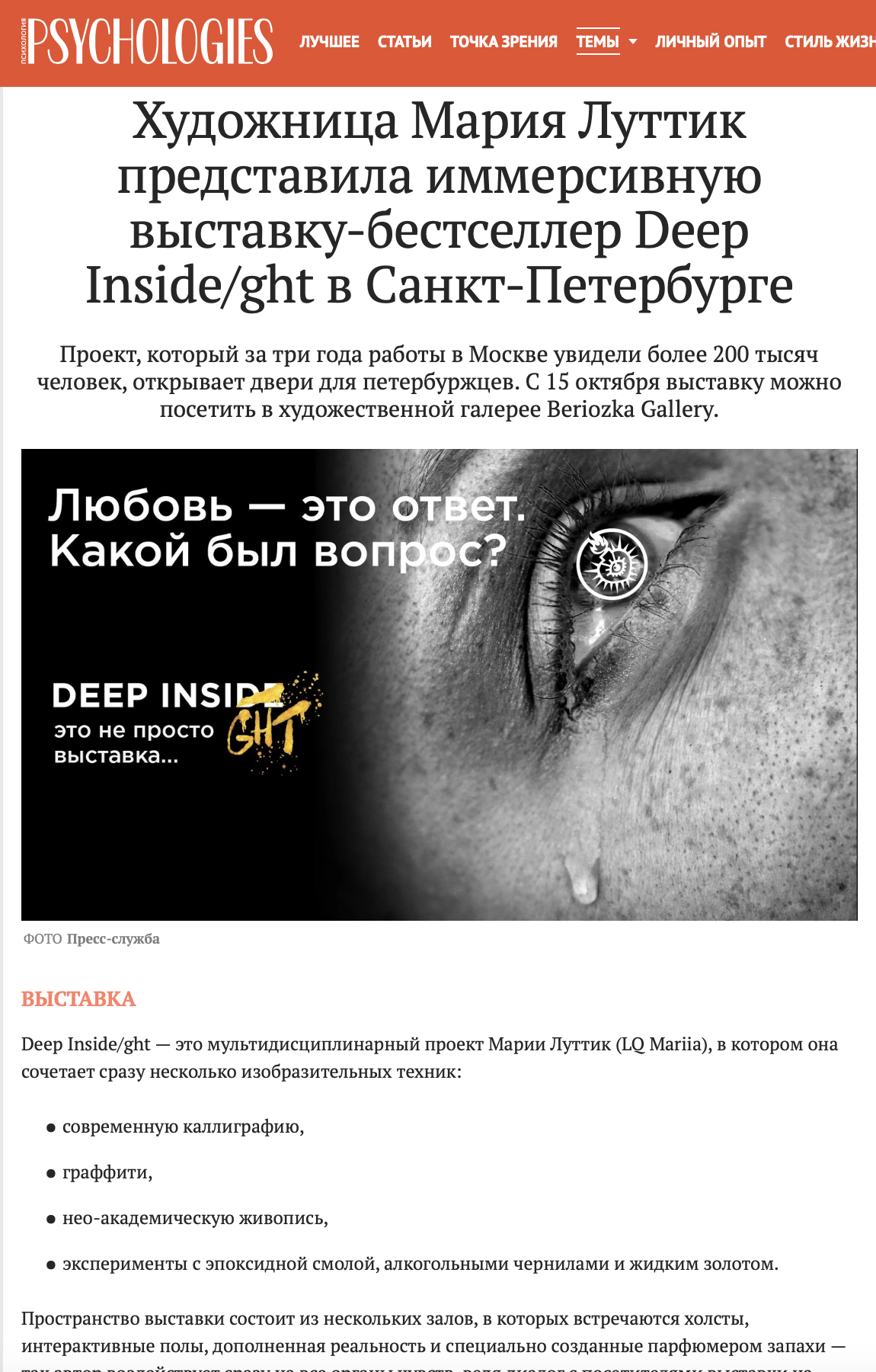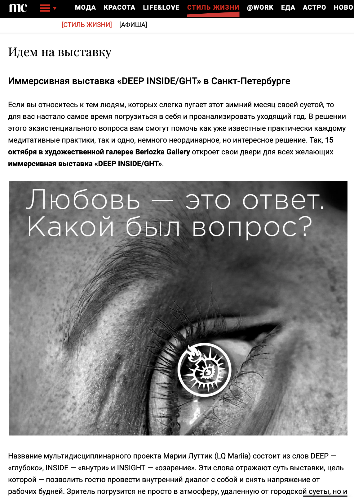 Мария Луттик, создатель и владелец проекта DEEP INSIDE/GHT.ЗадачиПостроение образа бренда и его продвижение на российском и международном рынках, организация мероприятий и коллабораций, увеличение упоминаний в СМИ и соцсетях.