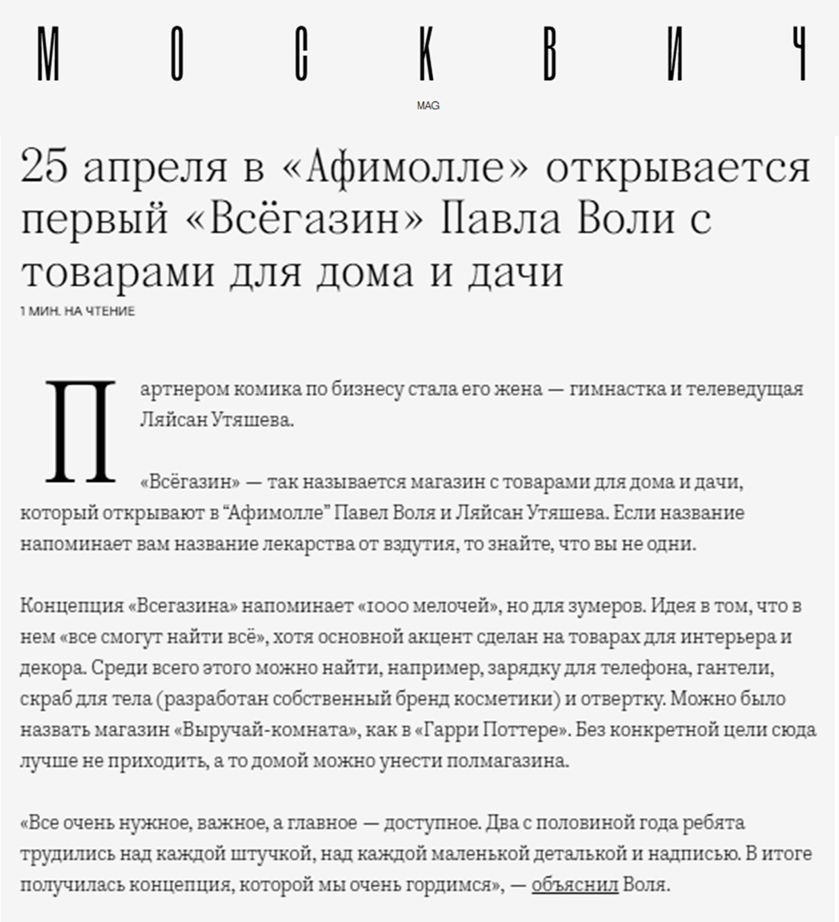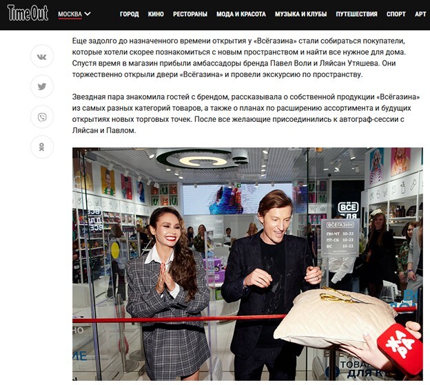Организация охватной PR кампании по случаю открытия "Всёгазин" в ТЦ "Афимолл"